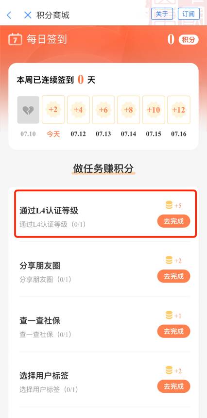 4、此外,还可点击“赚积分”, 通过完成任务如每日签到、分享朋友圈、查社保等,获得更多积分。