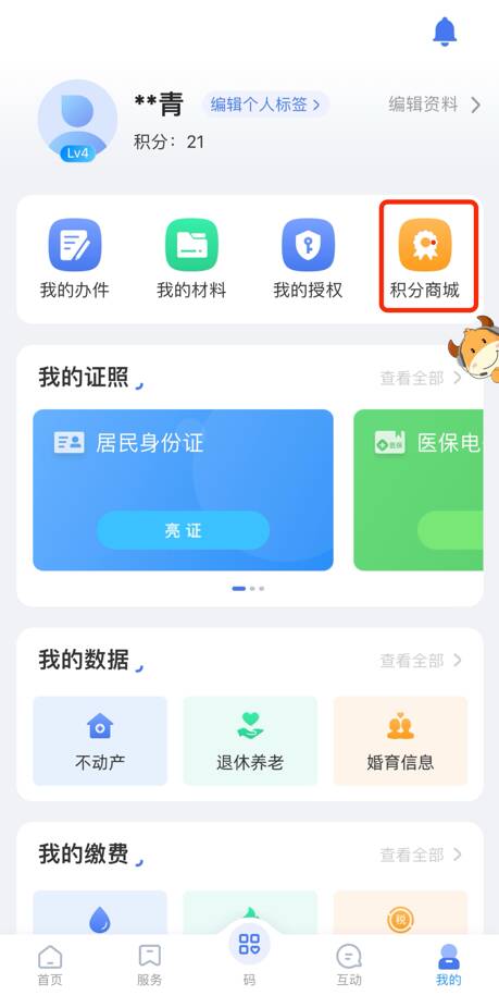 2、找到“积分商城”,点击进入;