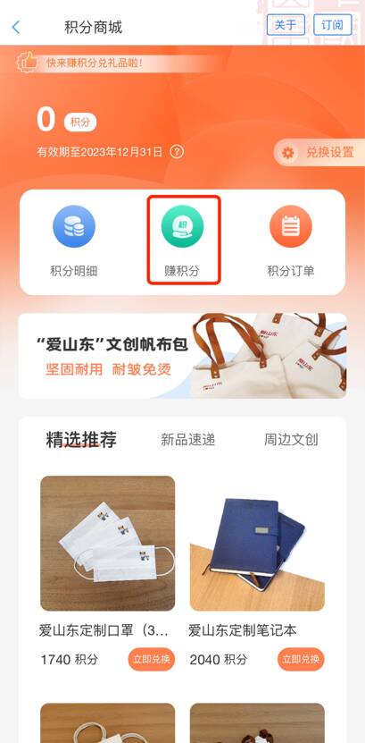 “爱山东”4.0版本丰富积分使用场景,完善积分商城体系,增加平台趣味性。做任务,赚积分,一键兑换“爱山东”周边商品。